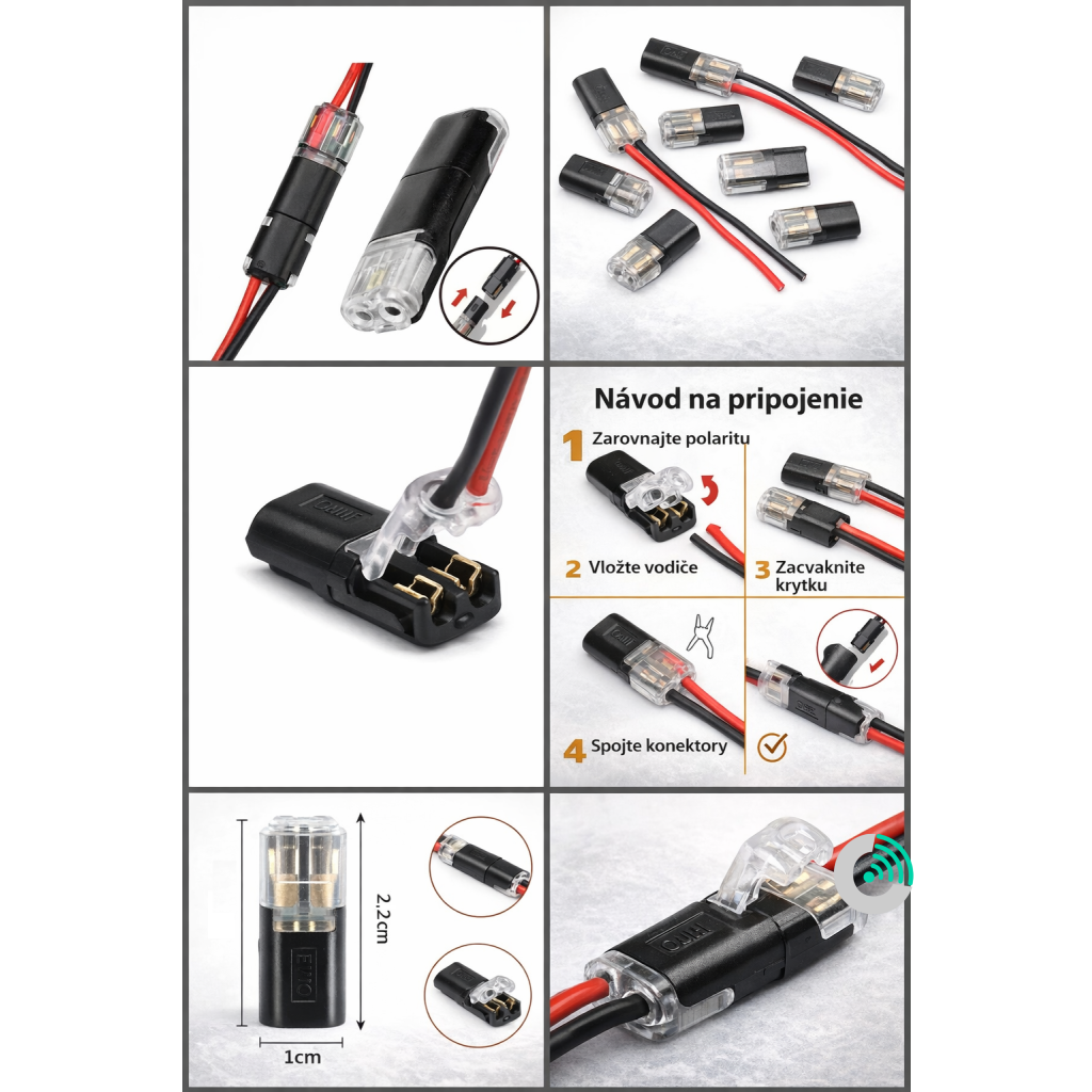 Praktické 2-pinové rýchlospojky (quick connectors) sú ideálnym riešením pre rýchle a spoľahlivé prepojenie vodičov bez potreby spájkovania alebo skrutkovania. Vďaka jednoduchému „snap“ systému zvládne zapojenie každý – stačí vložiť vodiče a zacvaknúť konektor.